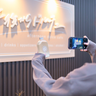 モデルさんの手とロゴを自然に写せるよう工夫して撮影。